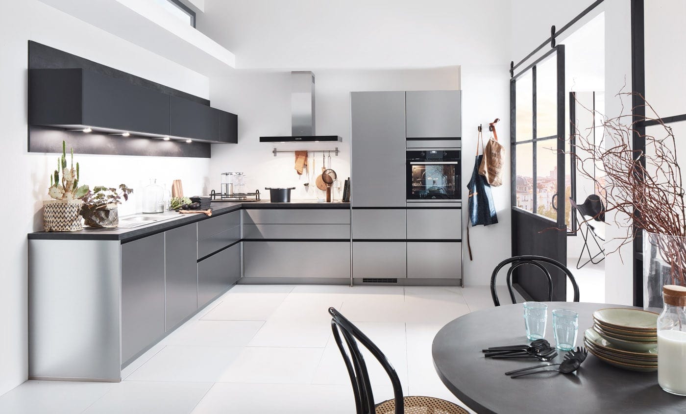 Grijs, zwart en bruin vormen de basis, aangevuld met ruwe texturen en opvallende accenten. Het resultaat? Een keuken die meteen een statement maakt. Geen wonder dat de industriële stijl zo populair is. Hij combineert duurzaamheid, karakter én een flinke dosis design. We vertellen je graag hoe dit in jouw keuken tot leven kan komen.